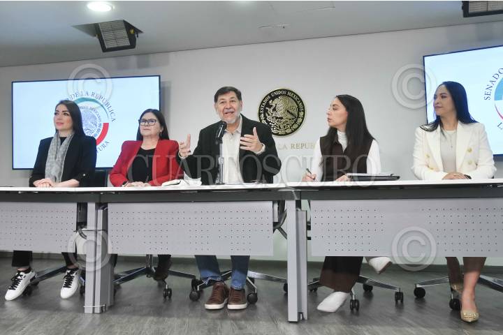 CIUDAD DE MÉXICO, 30ENERO2025.- Gerardo Fernández Noroña, presidente de la mesa directiva del Senado de la República, ofreció conferencia para referirse al procedimiento de insaculación pública de las personas elegibles aprobadas por el Comité de Evaluación del Poder Judicial de la Federación. Indicó que llegaron de último momento un listado para la inclusión de personas al proceso, por lo que el número de aspirantes aumentó a mil doscientos treinta y nueve. Estuvieron presentes las senadoras integrantes de la mesa directiva: Jasmine María Bugarín; Imelda Castro; Julieta Andrea Ramírez, y Lizeth Sánchez García. FOTO: MARIO JASSO/CUARTOSCURO.COM