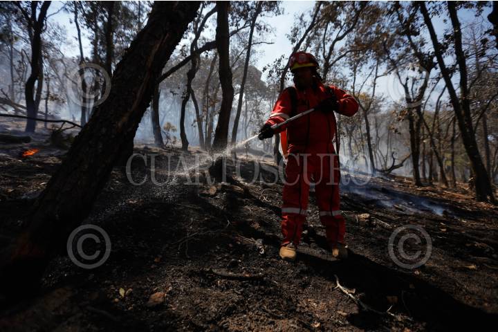 TECATE, BAJA CALIFORNIA, 29JUNIO2025.- Desde el 16 de junio, incendios forestales en Tecate han arrasado más de 12 mil hectáreas, destruyendo viviendas y afectando la flora, fauna y calidad del aire. Con un 70?control, el fuego sigue activo en zonas como La Rumorosa, donde se mantiene la prealerta de evacuación. Más de 200 elementos de emergencia trabajan en la contención. FOTO KAREN CASTAÑEDA/CUARTOSCURO.COM