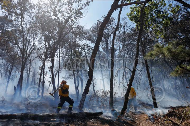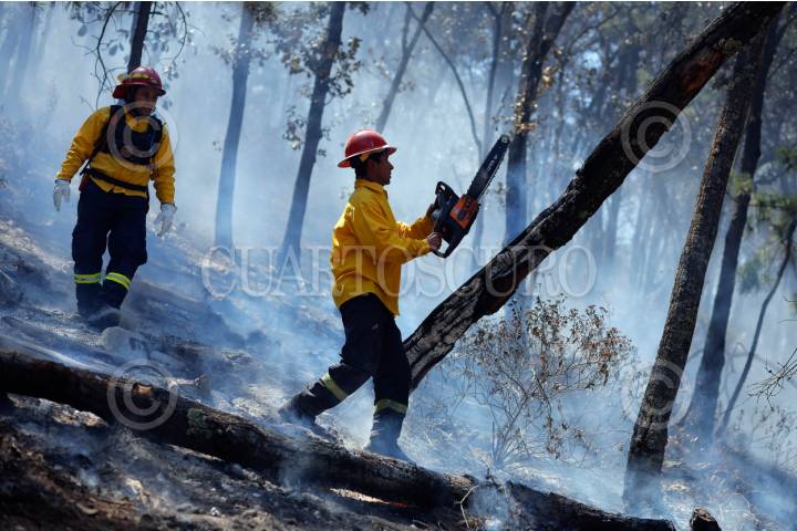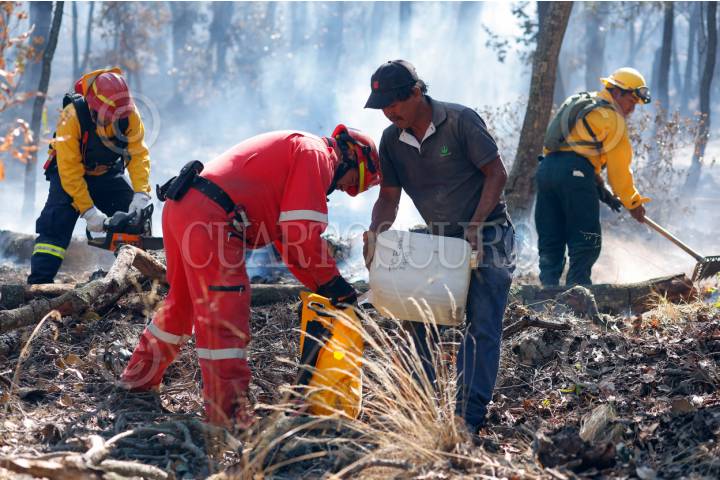 QUERÉTARO, QUERÉTARO, 01ABRIL2025.-Elementos de Protección Civil de los municipios de Humimilpan y Amealco, apoyados por Guardia Nacional y autoridades estatales sofocan el incendio forestal de la comunidad Pio XII la cuál ha consumido 700 hectáreas. El incendió ha sido controlado en un 95% y se espera que sea totalmente sofocado en las próximas horas. FOTO: CÉSAR GÓMEZ/CUARTOSCURO.COM