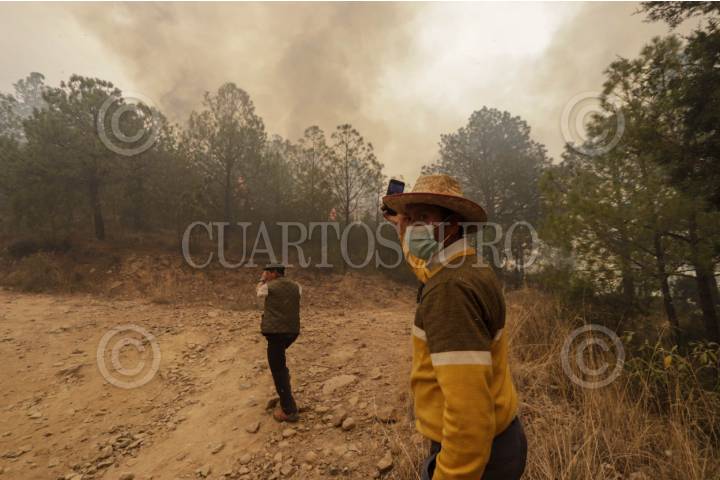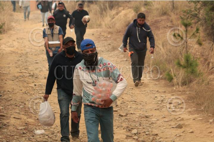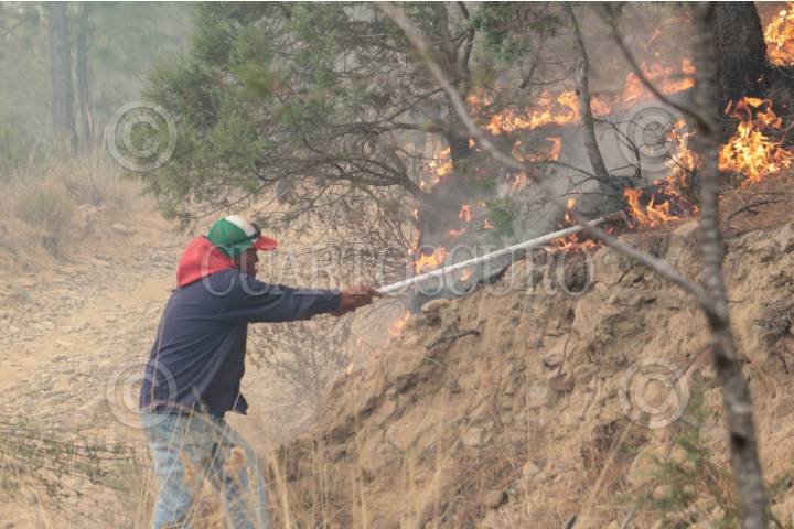 ATLTZAYANCA, TLAXCALA, 17ABRIL2025.- Ejidatarios y voluntarios continúan la lucha contra el fuego que desde hace 3 días consume la zona boscosa de ejidos del nororiente del estado de Tlaxcala. Las imágenes en el cerro "El Vergel", del ejido Buena Vista, perteneciente al municipio de Altzayanca, a dónde han acudido también miembros de las Fuerzas Rurales y Protección Civil.Cabe resaltar la suma de la población civil que con sus propios medios han hecho llegar ayuda ante esta catástrofe ambiental. FOTO: ALAÍN HERNÁNDEZ/CUARTOSCURO.COM