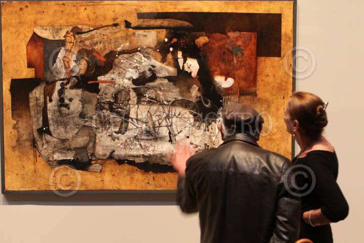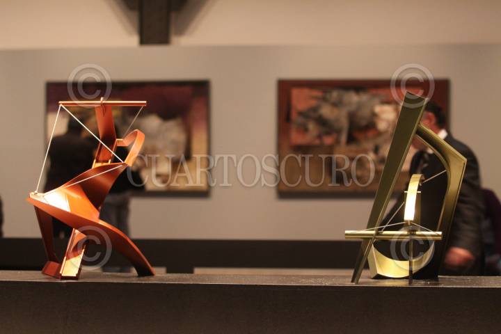 MÉXICO, D.F., 24JUNIO2010.- Aspectos de la exposición "Manuel Felguérez, Ciudad en Movimiento" que se inauguro esta noche en el Centro Cultural Estación Indianilla. FOTO: RODOLFO ANGULO/CUARTOSCURO.COM