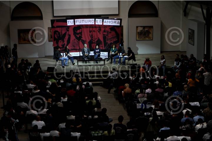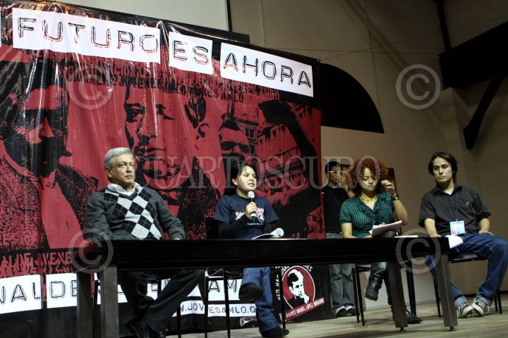 MÉXICO D.F., 18SEPTIEMBRE2010.- Andres Manuel López Obrador, autodenominado presidente legitimo asistió a un encuentro con la Red Nacional de Jóvenes en el Centro Cultural Indianilla. FOTO: RODOLFO ANGULO/CUARTOSCURO.COM