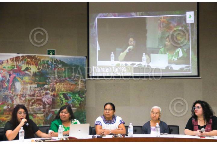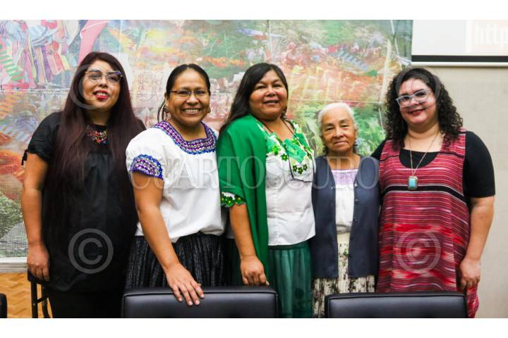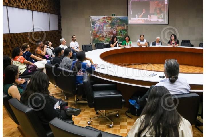 CIUDAD DE MÉXICO. 25MARZO2025.- Reunión de Mujeres indígenas con organizaciones internacionales para frenar la militarización de estas comunidades. Cristina Cob, Anabela Carlon, Yunuen Torres, Rufina Villa y Citlalli Hernández encabezaron la mesa y se llevó acabó en el Centro Cultural universitario Tlatelolco. FOTO: VICTORIA VALTIERRA/CUARTOSCURO.COM