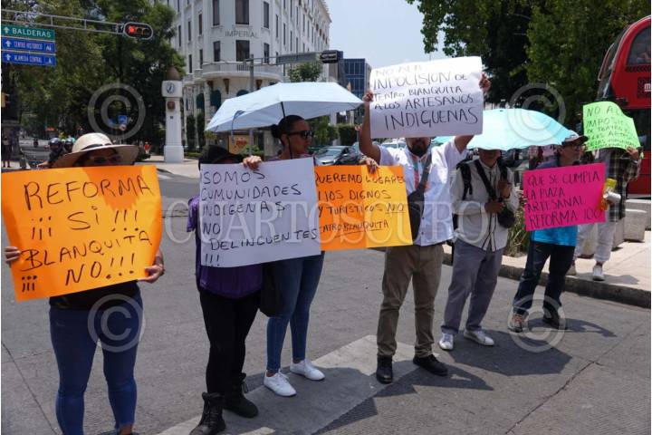 CIUDAD DE MÉXICO, 09JUNIO2025.- Artesanos protestaron en un bloqueo en Avenida Reforma para exigir justicia por la imposición de la reubicación de los artesanos triquis y mazahuas atrás del Teatro Blanquita. FOTO: GRACIELA LÓPEZ/CUARTOSCURO.COM
