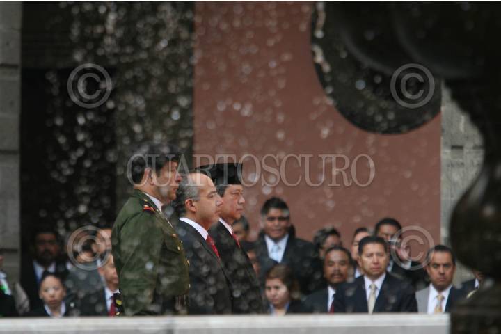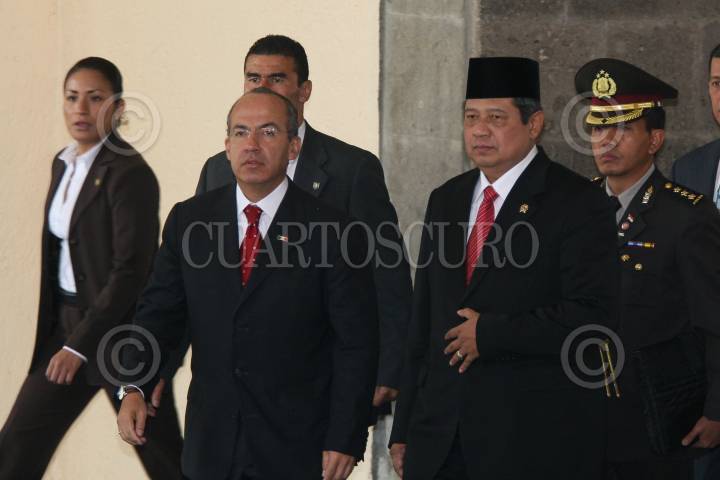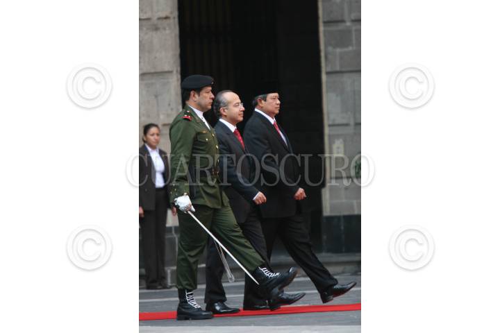 MÉXICO D.F., 17NOVIEMBRE2008.- El presidente, Felipe Calderón Hinojosa, en ceremonia oficial dio la bienvenida a Susilo Bambag Yudhoyono, presidente de la República de Indonesia, esto en el patio central de Palacio Nacional. FOTO: GUILLERMO PEREA/ CUARTOSCURO.COM
