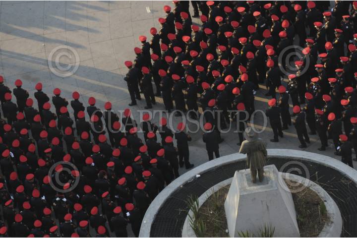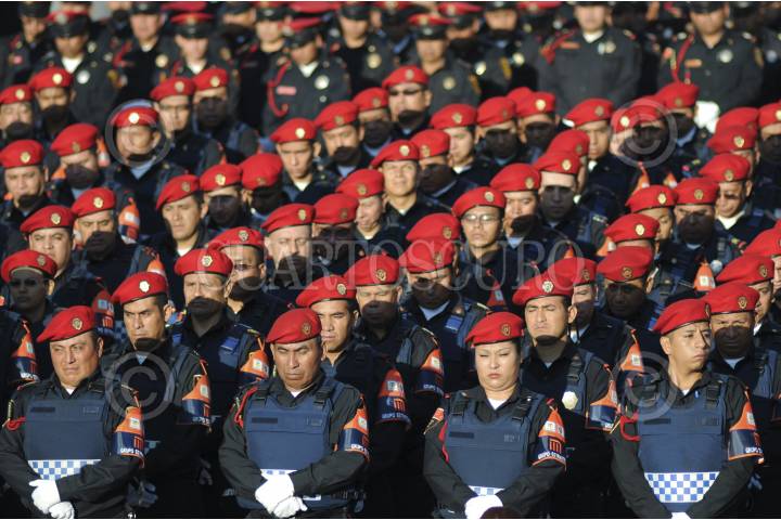 MÉXICO, DF., 27ABRIL2014.- En la explanada de la estación del mtro Insurgentes se realizó la ceremonia de incorporación de personal de la polícia bancaria en industrial a cuidar la seguridad dentro del Sistema de Transporte Colectivo Metro. FOTO: IVÁN STEPHENS /CUARTOSCURO.COM