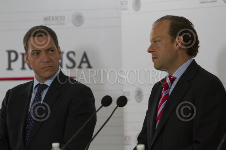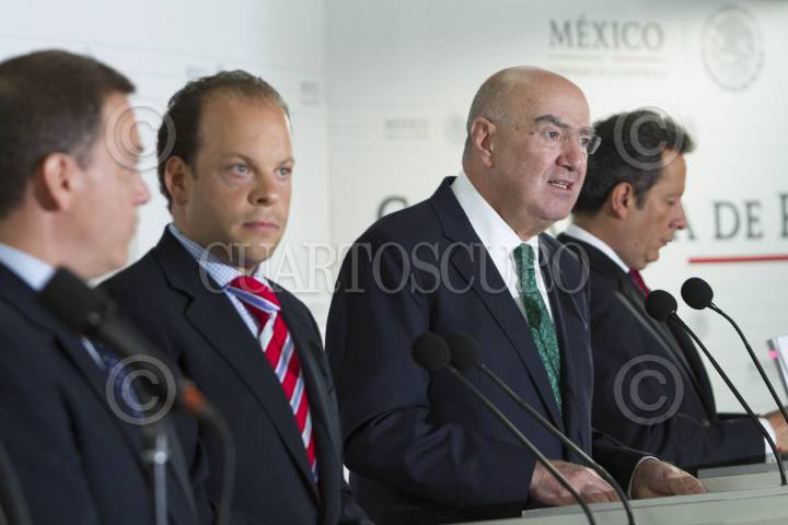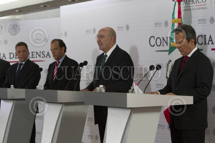 MÉXICO, D.F., 19AGOSTO2014.- David Korenfeld Federman, titular de CONAGUA, Juan José Guerra Abud, Secretario del Medio Ambiente y Recursos Naturales y Eduardo Sánchez Hernández Vocero del Gobierno de la República, dieron a conocer la designación de Carlos Regules como director de la Agencia Nacional de Seguridad Industrial y Protección del Medio Ambiente, esto durante de la conferencia ofrecida a los representantes de los medios de comunicación en el Casino del Club Naval. FOTO: GUILLERMO PEREA /CUARTOSCURO.COM