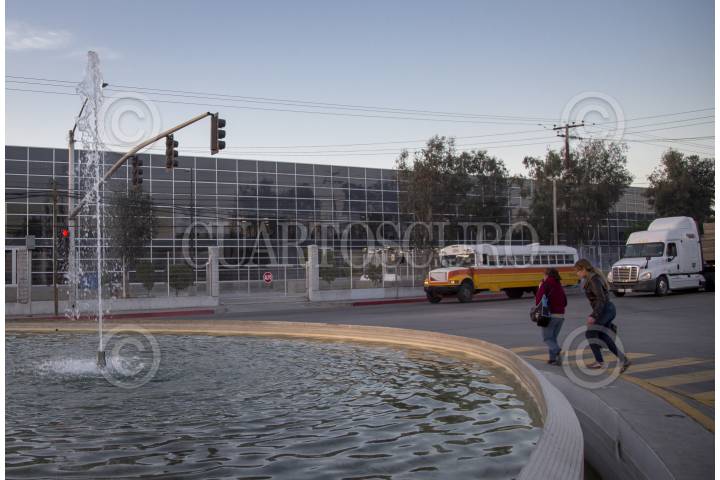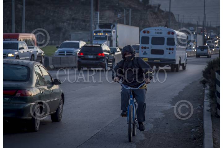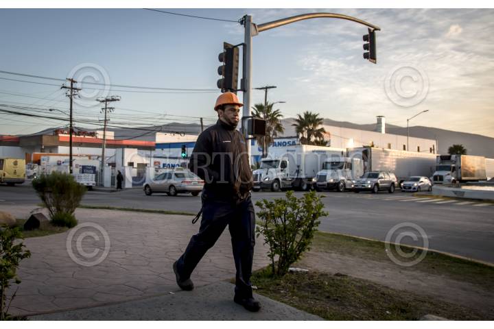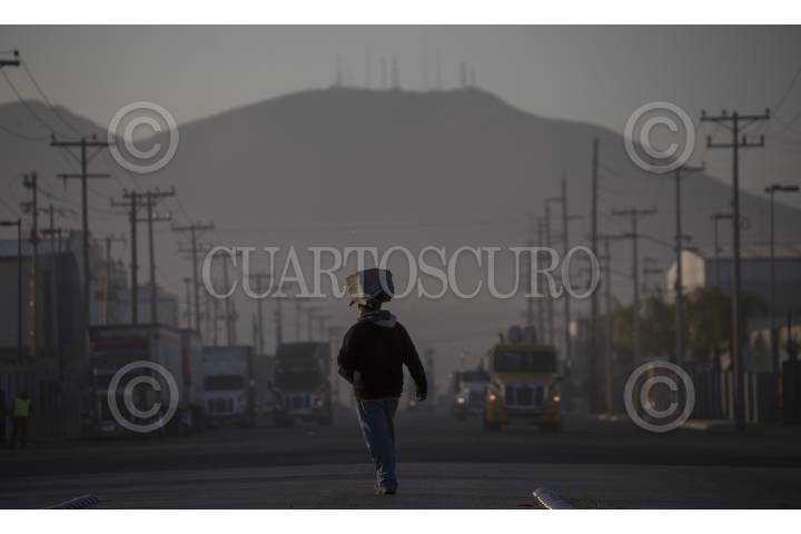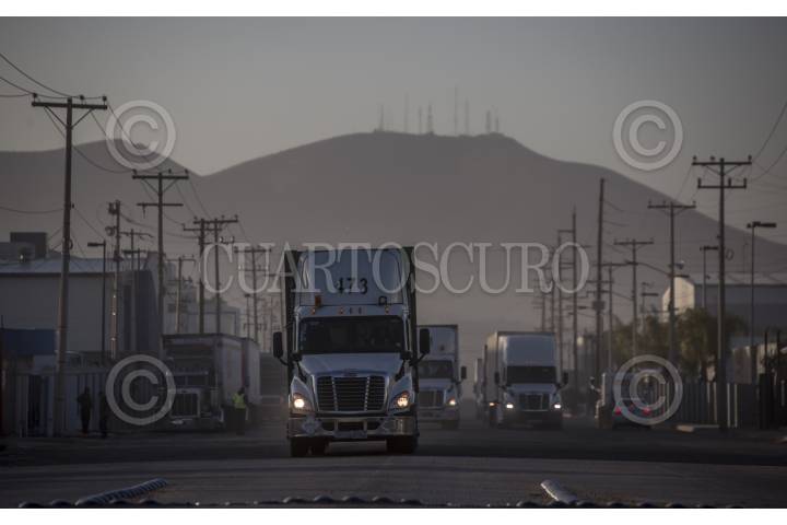 TIJUANA BAJA CALIFORNIA, 26ENERO2018.- La zona industrial de Otay, registra un gran movimiento comercial en los primeros minutos del día. Miles de trabajadores se apresuran a llegar a las empresas maquiladoras a la par de los cientos de camiones carga que se dirigen a la aduana de exportación para internarse a Estados Unidos. FOTO: CHRISTIAN SERNA /CUARTOSCURO.COM