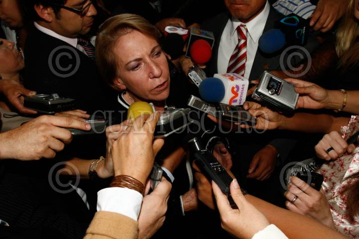 MÉXICO, D.F., 22JUJIO2008.- Georgina Kessel Martínez, secretaria de Energía a su llegada a una reunion de lideres de los partidos políticos en el Club de los Industriales, en la imagen es entrevistada por los medios de comunicación a cerca de la reforma energetica. FOTO: SAUL LOPEZ/CUARTOSCURO.COM