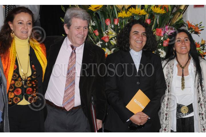 MÉXICO, D.F., 26NOVIEMBRE2009.- Carmen B. López-Portillo, Jorge Herralde, Consuelo Saízar, directora del CONACULTA y Sandra Lorenzano estuvieron presentes en la ceremonia de entrega de la presea Sor Juana Inés de la Cruz por parte de la Universidad del Claustro de Sor Juana a Jorge Herralde. FOTO: ARTURO LÓPEZ/CUARTOSCURO.COM