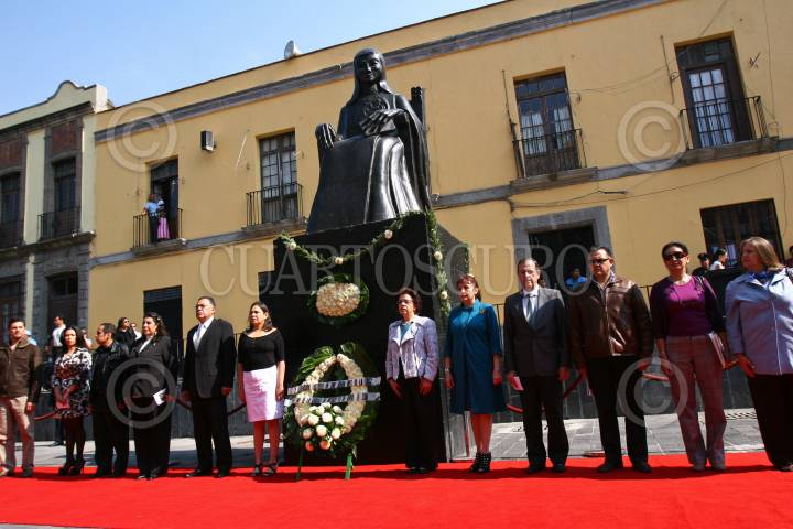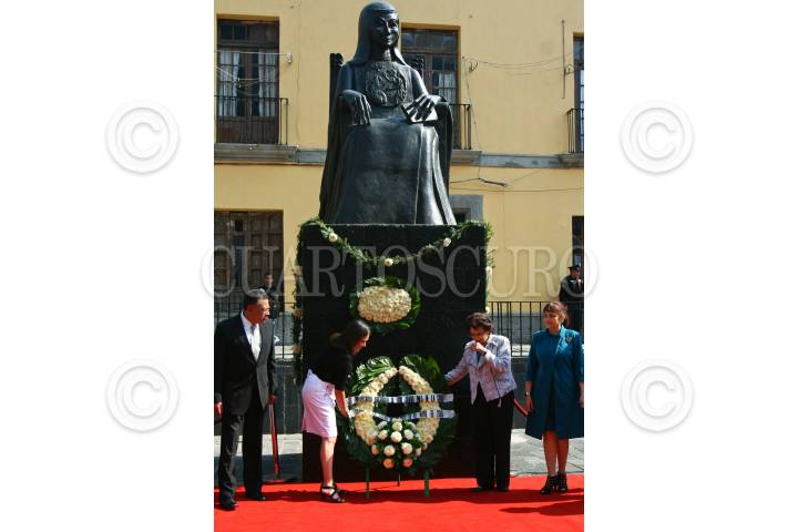 MÉXICO, D.F., 17ABRIL2010.- Sor Juana Inés de la Cruz (1651-1695) fue recordada hoy en su 315 aniversario luctuoso, en un acto realizado en un monumento erigido en su honor en el centro de la ciudad. FOTO: ISAAC ESQUIVEL/CUARTOSCURO.COM