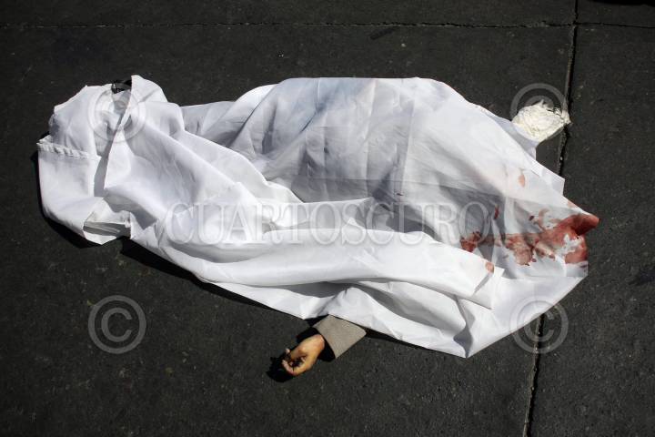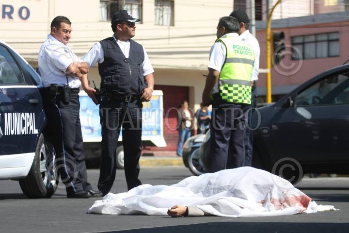 PUEBLA, PUEBLA, 07ENERO2011.- Andrea Inés Cruz Arenas, de 45 años de edad, falleció al ser atropellada por un camión de la ruta Cholula unidad 149, cuando cruzaba la calle 2 poniente esquina con 37 norte en la colonia Amor. El conductor del transporte público huyó de inmediato con el vehículo. Posteriormente los médicos forenses acudieron al lugar de los hechos para realizar el levantamiento de cadáver. FOTO: FRANCISCO GUASCO/CUARTOSCURO.COM