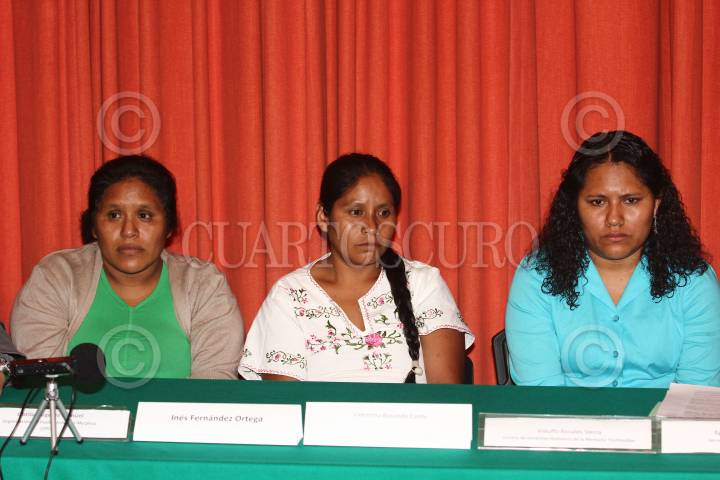 MÉXICO, D.F., 28JULIO2011.- Las indígenas Inés Fernández Ortega y Valentina Rosendo Cantú, víctimas de abuso sexual por parte de militares, en conferencia de prensa en el Centro Nacional de Comunicación Social, exigieron formalmente a la Procuraduría General de la República y a la Procuraduría General de Justicia Militar que sus casos sean investigados en el fuero civil en cumplimiento de las sentencias de la Corte Interamericana de Derechos Humanos. FOTO: SAÚL LÓPEZ/CUARTOSCURO.COM
