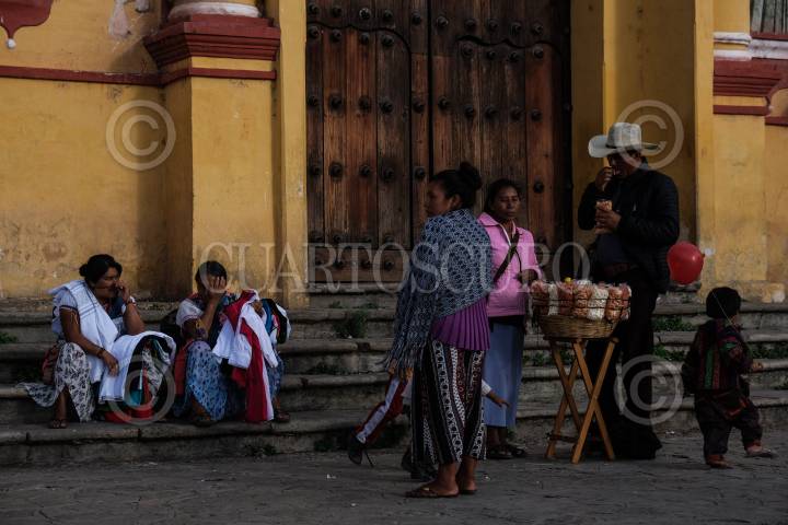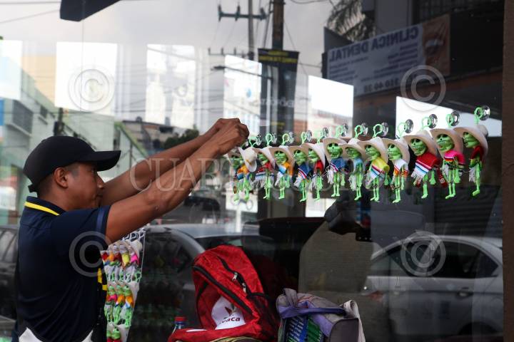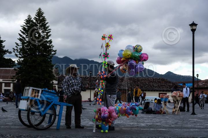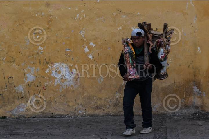 Cientos de vendedores ambulantes recorren las calles del centro histórico de la ciudad, ofreciendo productos como; globos, comida, artesanías, imágenes religiosas, bufandas, entre otros productos al turismo que llena las calles.
