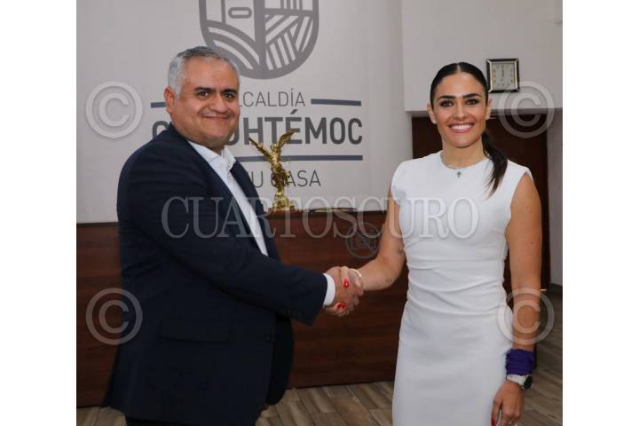 CIUDAD DE MÉXICO, 14JUNIO2024.- Raúl Ortega Rodríguez, alcalde de Cuauhtémoc, recibió en las instalaciones de la demarcación a la Alcaldesa Electa de Cuauhtémoc, Alessandra Rojo de la Vega, en una reunión informal previo a lo que será el proceso de transición. FOTO: CORTESÍA CUARTOSCURO.COM