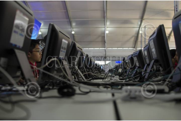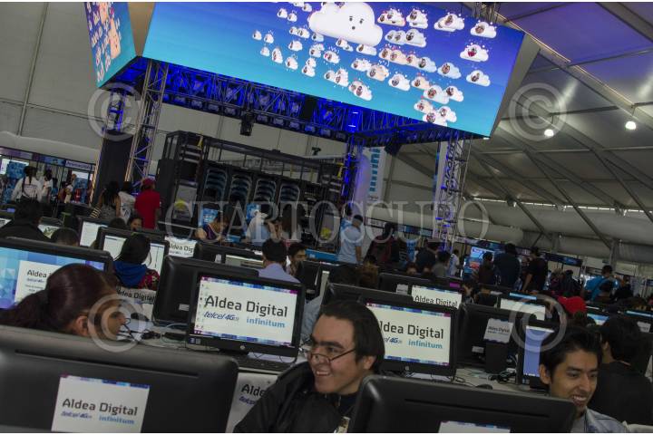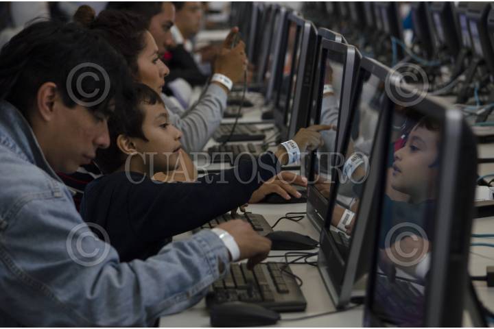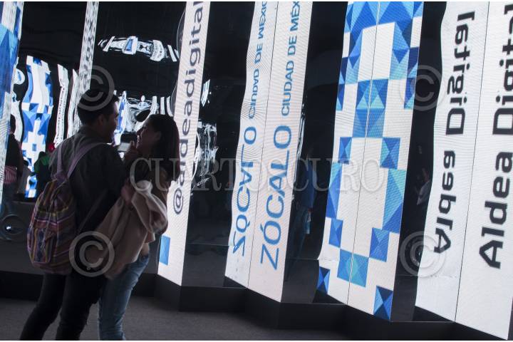 MÉXICO, D.F., 12JULIO2015.- La Aldea Digital, instalada en el Zócalo capitalino, cumple su primer fin de semana después de haber sido inaugurada hace un par de días por el empresario Carlos Slim. Corredores con cientos de computadoras, acceso a internet inalámbrico, talleres de familiarización con las tecnologías de la información y conferencias con expertos, son algunas de las amenidades con las que cuenta esta feria tecnológica de entrada gratuita. FOTO: MARÍA JOSÉ MARTÍNEZ /CUARTOSCURO.COM