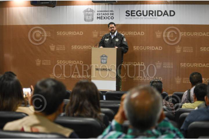 TOLUCA, ESTADO DE MÉXICO, 09MAYO2024.- Andrés Andrade Téllez, Secretario de Seguridad del Estado de México ofreció su informe semanal en donde expuso las diferentes acciones en materia de seguridad que se han realizado en la última semana en la entidad mexiquense. FOTO: CRISANTA ESPINOSA AGUILAR /CUARTOSCURO.COM