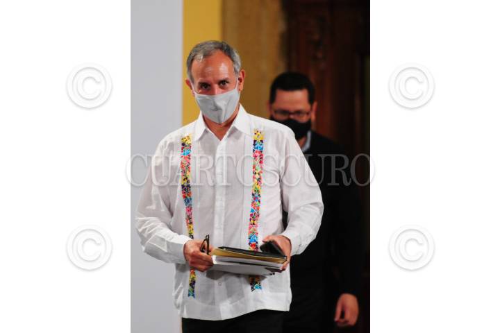 Hugo López-Gatell Ramírez, Subsecretario de Prevención, durante la conferencia-informe diario sobre coronavirus COVID-19 en México en el Salón Tesorería de Palacio Nacional