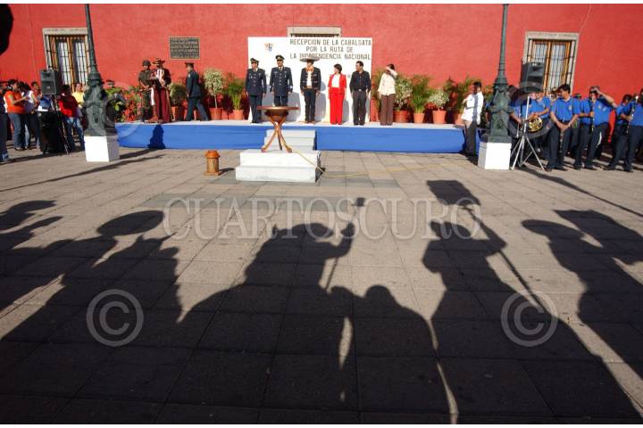IRAPUATO, GUANAJUATO., 25SEPTIEMBRE2007.- El General de la 16 zona militar, Mauricio Sánchez Bravo acompañado del Presidente municipal, Ing. Mario Turrent Anton, en la recepción por la cabalgata de la ruta de independencia nacional. FOTO: JOSE LUIS CERVANTES/CUARTOSCURO.COM