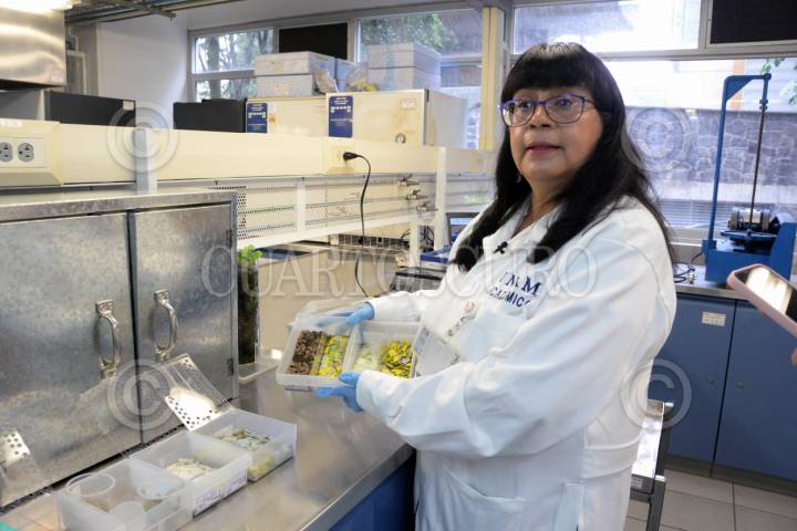 CIUDAD DE MÉXICO, 03ENERO2024.- Los gorgojos que durante largo tiempo se han considerado una plaga por alimentarse de semillas como frijol y maíz, ahora son utilizados por investigadores del Instituto de Ingeniería (II) de la UNAM para examinar bolsas de plástico y saber si son biodegradables. La investigadora Neftalí Rojas Valencia dirige el equipo que ha desarrollado una técnica novedosa, rápida y de bajo costo para analizar si los productos que hay en el mercado son biodegradables o compostables. Ese procedimiento no requiere equipos sofisticados, ni personal especializado o reactivos. FOTO: UNAM/CUARTOSCURO.COM