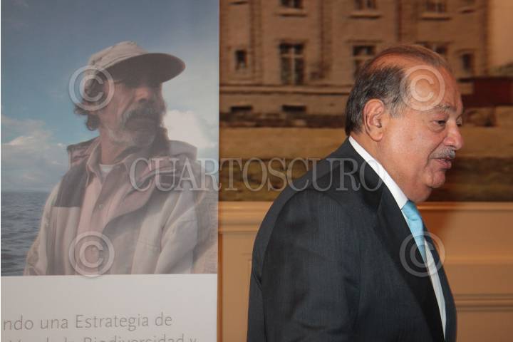 MÉXICO, D.F. 02OCTUBRE2013.- El empresario Carlos Slim acudió al informe de logros de la Alianza de la WWF (World Wildlife Fund),Semarnat y la Fundación Slim, tras cumplir 5 años de apoyar estrategias de conservación de la Biodiversidad y el Desarrollo Sustentable de México. Al evento tambien asistieron también José Sarukhán, Biologo exrector de la UNAM, Juan José Guerra Abud, titular de la Secretaria del Medio Ambiente y Recursos Naturales (SEMARNAT), Omar Vidal, titular de WWF México. Al evento llegaron también los hijos del Ingeniero Slim: Carlos, Marco Antonio y Patricio Slim Domit. FOTO: JUAN PABLO ZAMORA /CUARTOSCURO.COM