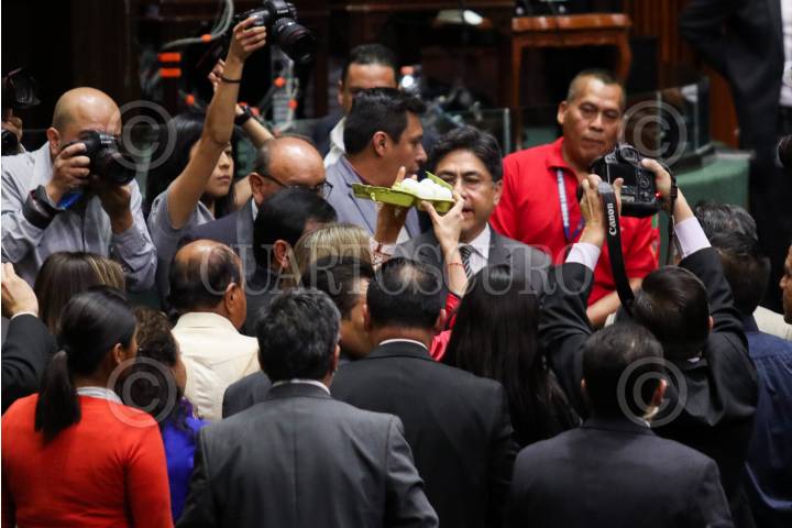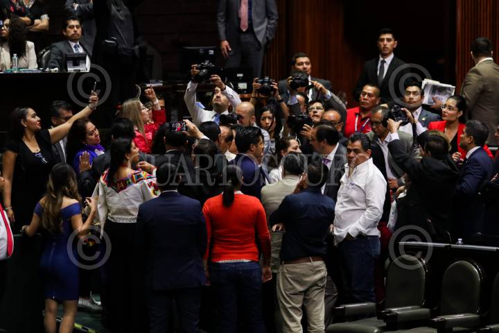 Una pareja de ciudadanos se colaron a la sesión de la Cámara de Diputados, donde extendieron una manta contra el diputado del Partido del Trabajo, Gerardo Fernández Noroña. Los manifestantes fueron retirados por personal de seguridad.