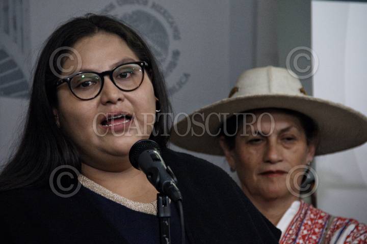 La senadoras Clitlalli Ramírez y Jesusa Rodríguez durante conferencia de su grupo parlamentario donde se posicionaron ante la violencia de género en el país