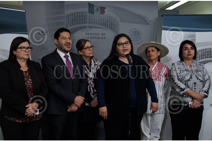 Los Senadores del grupo parlamentario Morena Clitlalli Hernández, Martí Batres, Jesusa Rodríguez, encabezaron conferencia de prensa para dar posición ante las cifras alarmantes de feminicidio en el país