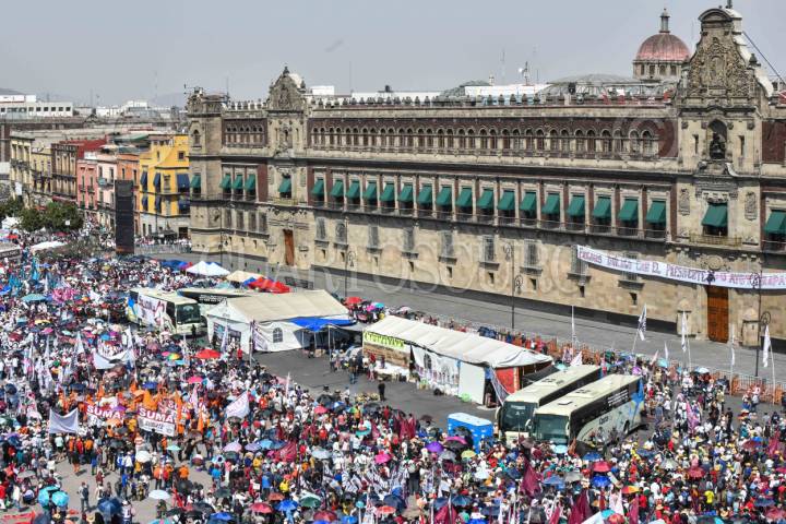CIUDAD DE MÉXICO, 01MARZO2024.- Panorámica del zócalo capitalino en donde miles de simpatizantes se reunieron en el inicio de la campaña de Claudia Sheinbaum, precandidata a la presidencia de la República por la alianza "Sigamos Haciendo Historia", para escuchar su proyecto de nación. FOTO: MARIO JASSO/CUARTOSCURO.COM