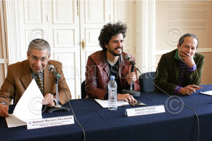 MÉXICO, D.F., 04FEBRERO2009.- Samuel Morales Escalante de Jumex, Eduardo Thomas director de Injerto y José Luis Paredes, director de la casa del Lago, durante la conferencia para anunciar la funcion de documentales que sera gratuita la entrada. FOTO: VICTORIA VALTIERRA/CUARTOSCURO.COM