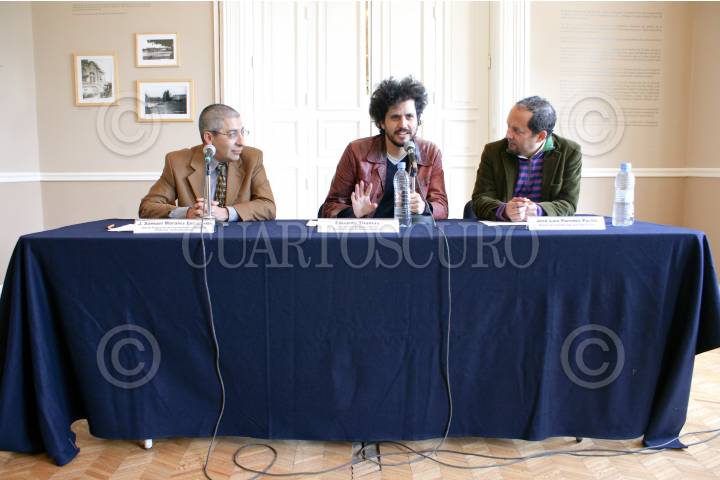MÉXICO, D.F., 04FEBRERO2009.- Samuel Morales Escalante, Eduardo Thomas y José Luis Paredes, durante la rueda de prensa para anunciar la funcion de documentales de Injerto. FOTO: VICTORIA VALTIERRA/CUARTOSCURO.COM