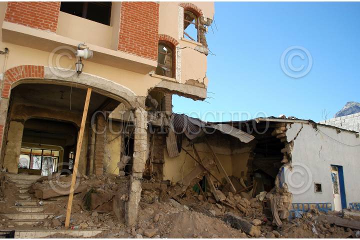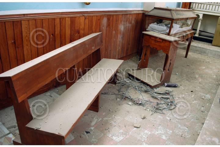 CONCEPCIÓN DEL ORO, ZACATECAS, 09DICIEMBRE2010.- Aspectos de los daños que sufrieron la notaria parroquial tras la explosión del día martes, los hechos ocurrieron por un descuido en el manejo de los juegos pirotécnicos que se utilizarían para las fiestas patronales de la Virgen de la Inmaculada Concepción. El incidente dejó como saldo la muerte de dos jóvenes y cuatro heridos. FOTO: ADOLFO VALTIERRA/CUARTOSCURO.COM