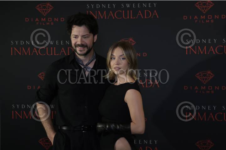 CIUDAD DE MÉXICO, 02MAYO2024. Álvaro Morte y Sydney Sweeney previo a la conferencia de prensa donde presentaron la película “Inmaculada”, en un hotel de la Ciudad de México. FOTO: EDGAR NEGRETE LIRA/CUARTOSCURO.COM