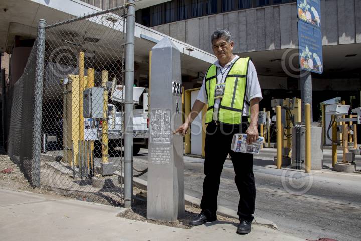 MEXICALI, BAJA CALIFORNIA, 30JULIO2016.- En la frontera norte de México, donde diario cruzan miles de personas se encuentra un monumento que muestra el límite entre la República Mexicana y los Estados Unidos de Norteamérica. En la imagen Sergio Tamai, director del Hotel del Migrante "Ángeles sin Fronteras", quien realiza un recorrido para mostrar como los han ido desplazando de sus campamentos en la línea para evitar que hagan labores de boteo y manifestaciones. FOTO: TERCERO DÍAZ /CUARTOSCURO.COM
