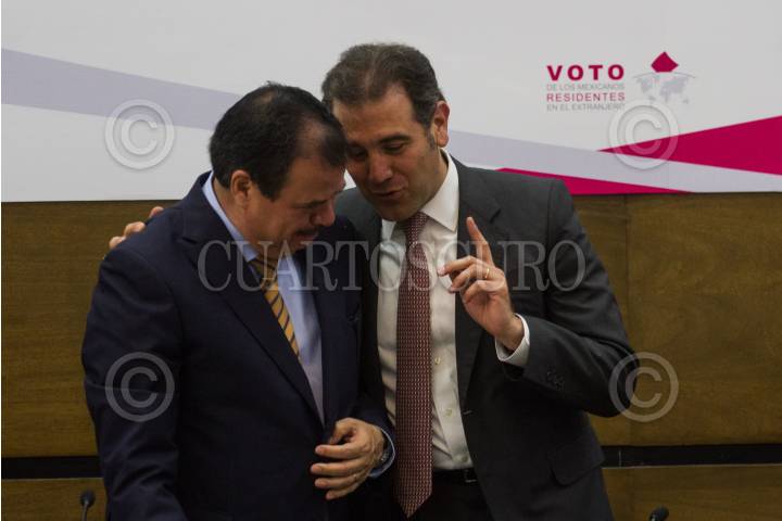 CIUDAD DE MÉXICO, 10OCTUBRE2018.- Gerardo E. García, comisionado del Instituto Nacional de Migración, y Lorenzo Córdova Vianelo, consejero presidente del Instituto Nacional Electoral, durante la firma del convenio de colaboración entre el INM y el INE. FOTO: ISAAC ESQUIVEL /CUARTOSCURO.COM