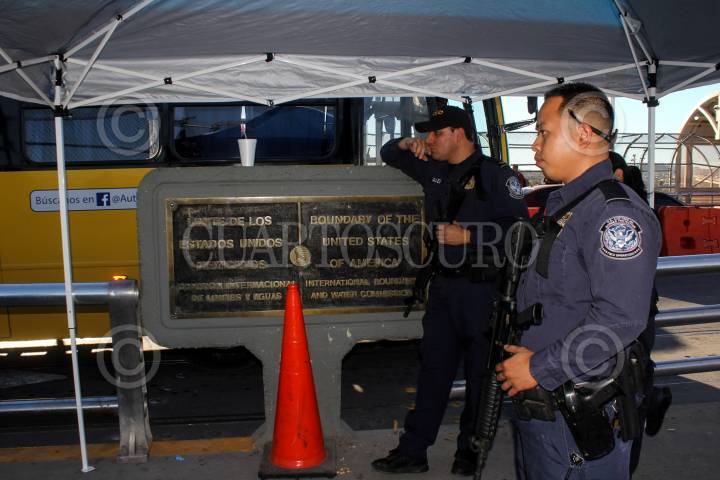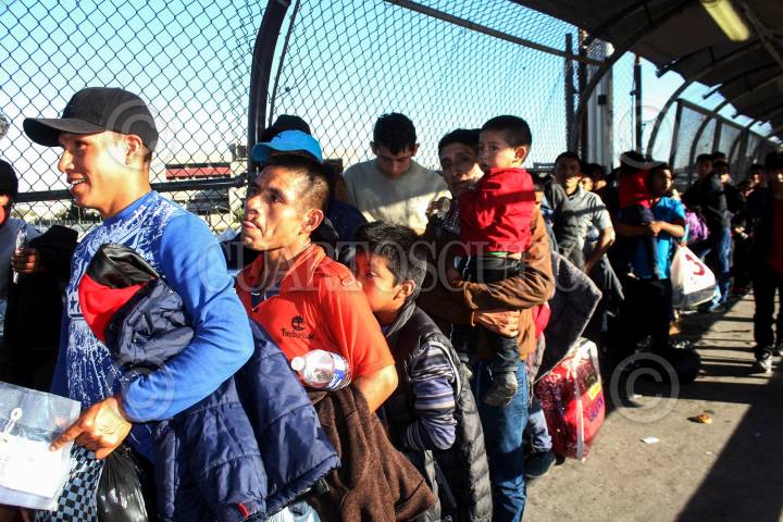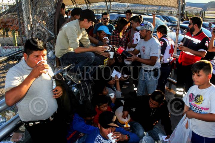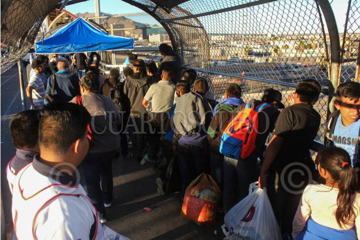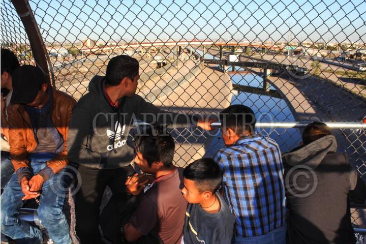 CIUDAD JUÁREZ, CHIHUAHUA 29OCTUBRE2018.- Un grupo de migrantes, se encuentran varados desde hace tres días a mitad del Puente Internacional Santa Fe, impedidos para ingresar a los Estados Unidos donde planean solicitar asilo político. Las veinte personas, hombres y mujeres, la mayoría de origen cubano (algunos de nacionalidad rusa y centroamericanos), han permanecido a la intemperie sin alimento y apenas agua que les regalan los peatones, se han visto impedidos para ingresar a las oficinas norteamericanas por los agentes de Aduanas, Protección Fronteriza y por una barrera policíaca. FOTO: NACHO RUÍZ / CUARTOSCURO.COM