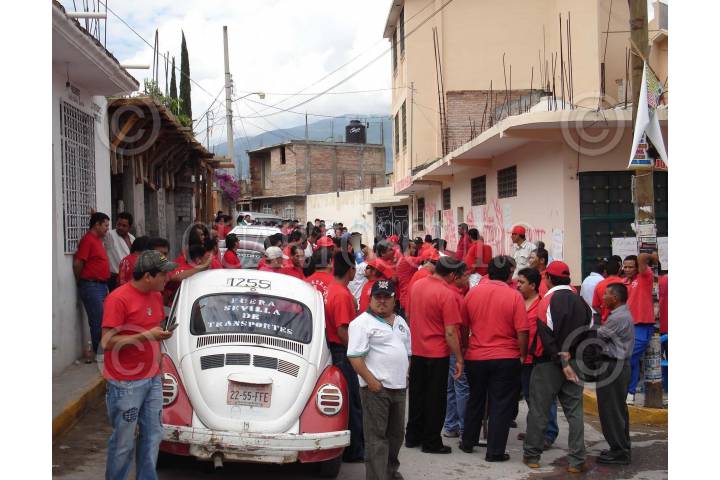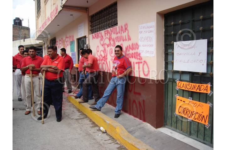 CHILPANCINGO, GUERRERO. 11JUNIO2007.- Aspecto general de la toma de las oficinas de la direccion de transportes en el estado por parte de transportistas integrantes de la COSTEG encabezados por su dirigente Inocente Mojica, para exigir la renuncia del director Ignacio Sevilla Diaz, a quien acusan de corrupto. FOTO: OSCAR ALVARADO/CUARTOSCURO.COM