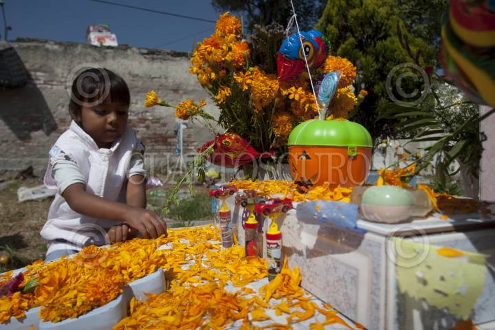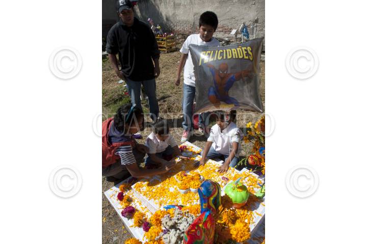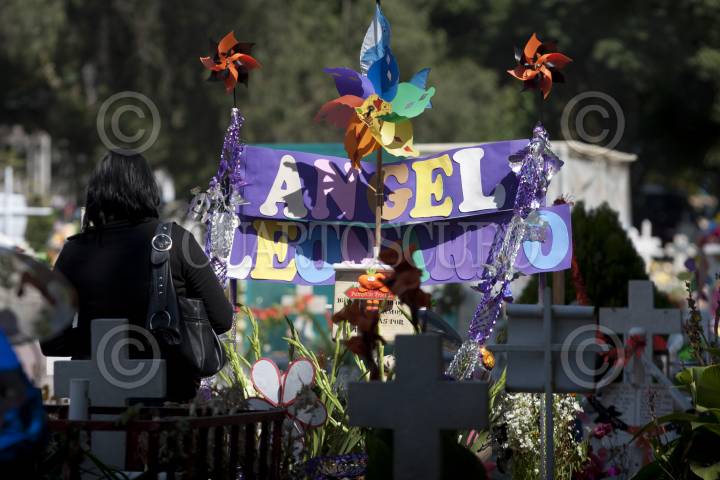 MÉXICO, D.F., 01NOVIEMBRE011.- Visitantes del panteón San Isidro, acostumbra adornar las tumbas de los niños durante la celebración del Día de Muertos ya que cada día primero de Noviembre se celebra a los Santos Inocentes. FOTO: GUILLERMO PEREA/CUARTOSCURO.COM