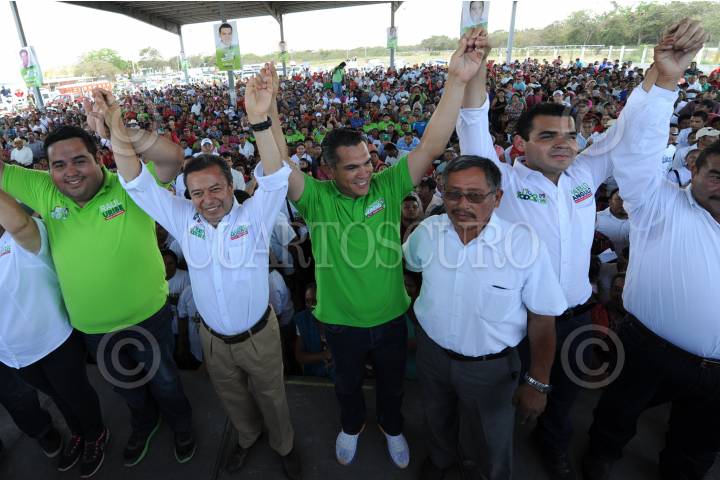 CHAMPOTÓN, QUINTANA ROO, 12ABRIL2015.- En la Asociación de Ganaderos de esta localidad, el presidente del CEN del PRI, César Camacho encabezó, al lado de Alejandro Moreno Cárdenas, candidato del tricolor a la gubernatura de Campeche, un evento con productores del campo, pescadores y vecinos de este municipio. FOTO: CUARTOSCURO.COM