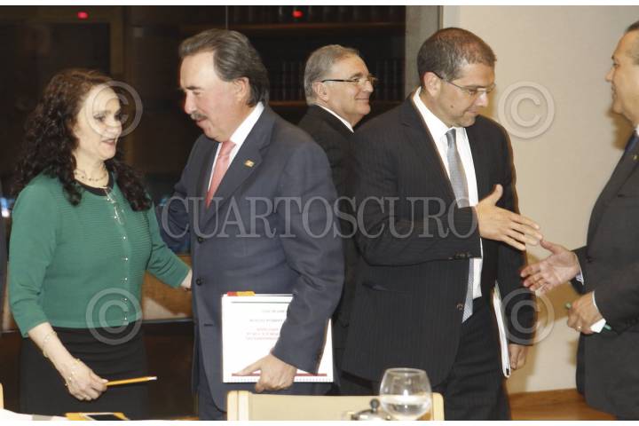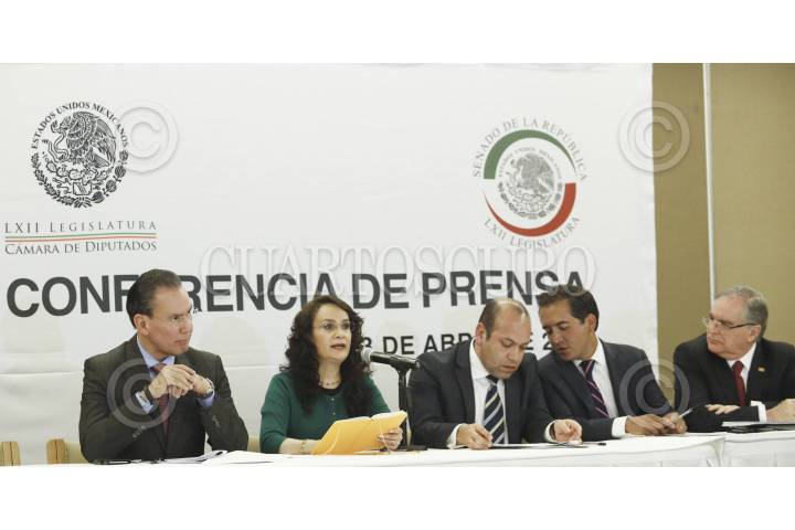MÉXICO, D.F., 13ABRIL2015.- Ricardo Anaya, diputado del PAN; Miguel Alonso Raya, diputado del PRD; Fernando Herrera, senador del PAN; Dolores Padierna Luna, senadora del PRD; Emilio Gamboa Patrón, senador del PRI; Miguel Romo, senador del PRI; Armando Ríos Piter, senador del PRD; Manlio Fabio Beltrones, diputado del PRI; Héctor Gutiérrez de la Garza, diputado del PRI; y Manuel Añorve, diputado del PRI; al finalizar la reunión que sostuvieron los coordinadores de los diversos grupos parlamentarios de la Cámara de Diputados y de Senadores. FOTO: CUARTOSCURO.COM