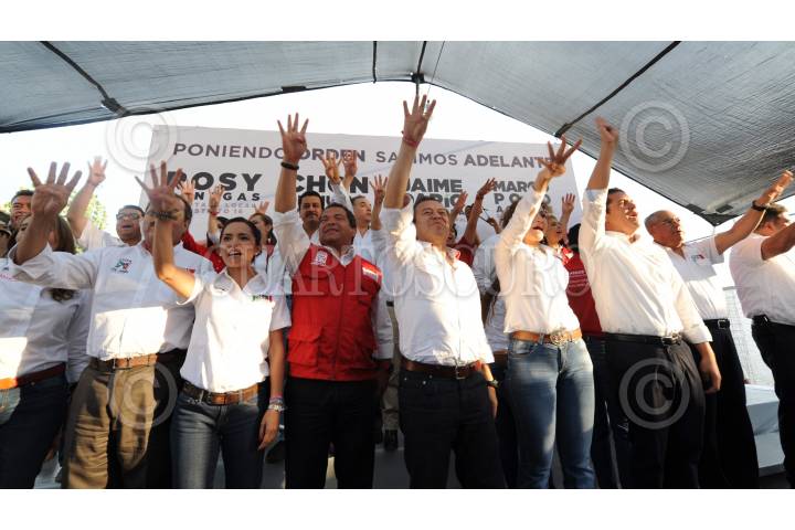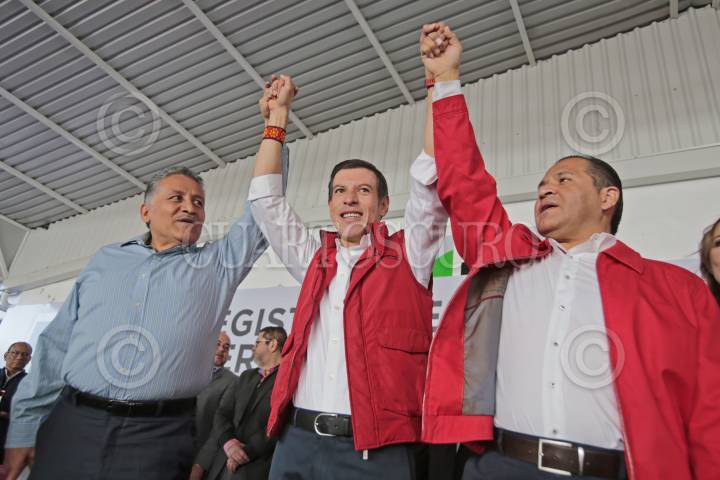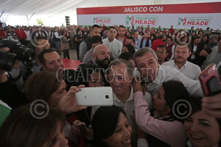GUADALAJARA, JALISCO, 27DICIEMBRE2017.- El Pre Candidato a la Presidencia de la Republica José Antonio Meade, el Gobernador del Estado Jorge Aristóteles Sandoval Díaz y el Pre Candidato a la Gubernatura de Jalisco, Miguel Castro Reynoso, encabezaron un mitin con militantes del Partido Revolucionario Institucional (PRI) en la entidad, esto con vista a las próximas campañas electorales en el País, dicho evento tuvo lugar en el Parque Trasloma. FOTO: FERNANDO CARRANZA GARCIA / CUARTOSCURO.COM