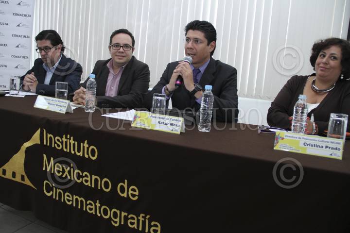MÉXICO, D.F., 14AGOSTO2013.- Ramón Ramírez, Director de Relaciones Públicas Cinépolis, Juan Manuel González, Director del FIC Monterrey, Katzir Meza, Presidente de Conarte y Crsitina Prado, Directora de Promoción Cultural del IMCINE, durante la conferencia de prensa para presentar el 9º Festival Internacional de Cine de Monterrey a realizarse del 22 de agosto al 01 de septiembre en la capital de Nuevo León. FOTO: ADOLFO VLADIMIR / CUARTOSCURO.COM