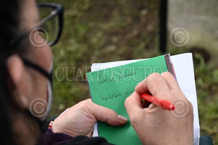 Luego de escribir un pensamiento, las mujeres los colocan en el árbol de las tertulias.