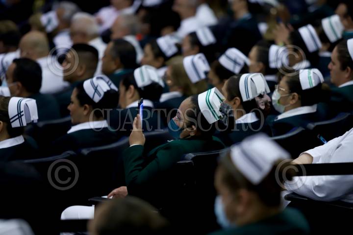 Enfermera durante la celebración de los 80 años del Instituto Mexicano del Seguro Social (IMSS), en la Unidad de Congresos del Centro Médico Nacional Siglo XXI.