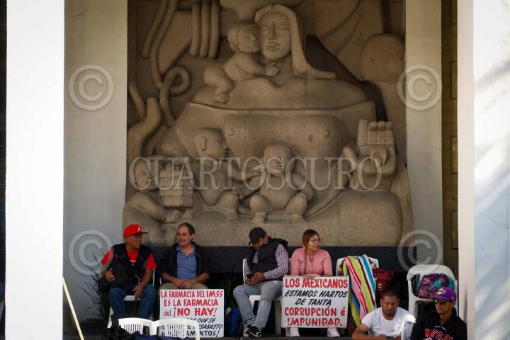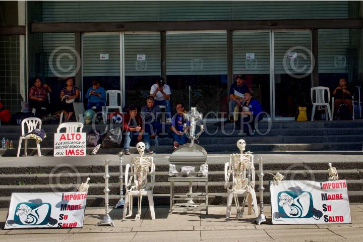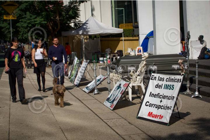 Derechohabientes del Instituto Mexicano del Seguro Social bloquearon Paseo de la Reforma en carriles centrales, laterales y posteriormente la entrada a la sede de Reforma del IMSS. Los inconformes exigen al instituto un mejor trato así como que se acabe la corrupción.