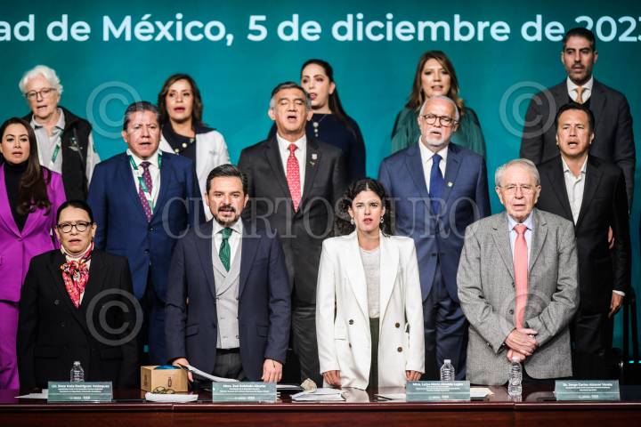 CIUDAD DE MÉXICO, 13DICIEMBRE2024.- Las gobernadoras: María Eugenia Campos (Chihuahua); Rocío Nahle (Veracruz); Lorena Cuéllar (Tlaxcala); Mara Lezama (Quintana Roo); Delfina Gómez (Estado de México); Evelyn Salgado (Guerrero); Libia García (Guanajuato); Indira Vizcaíno (Colima), y los gobernadores: Alfonso Durazo (Sonora); Javier May (Tabasco) y Samuel García (Nuevo León), se toman una fotografía durante la 125 Asamblea General del Instituto Mexicano del Seguro Social (IMSS) realizada en Palacio Nacional. FOTO: MARIO JASSO/CUARTOSCURO.COM