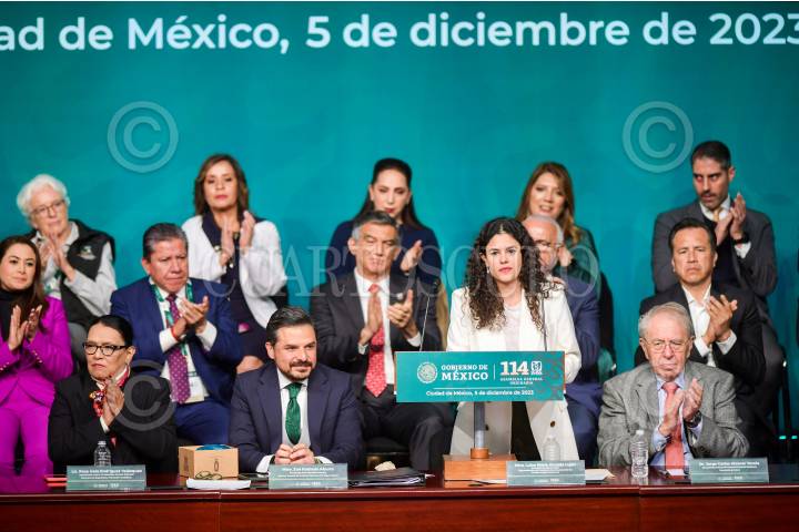 CIUDAD DE MÉXICO, 13DICIEMBRE2024.- Claudia Sheinbaum, presidenta de México, durante la 125 Asamblea General del Instituto Mexicano del Seguro Social (IMSS) realizada en Palacio Nacional. La acompañan: Zoé Robledo, director general del IMSS-Bienestar y Rosa Icela Rodríguez, secretaria de Gobernación. FOTO: MARIO JASSO/CUARTOSCURO.COM