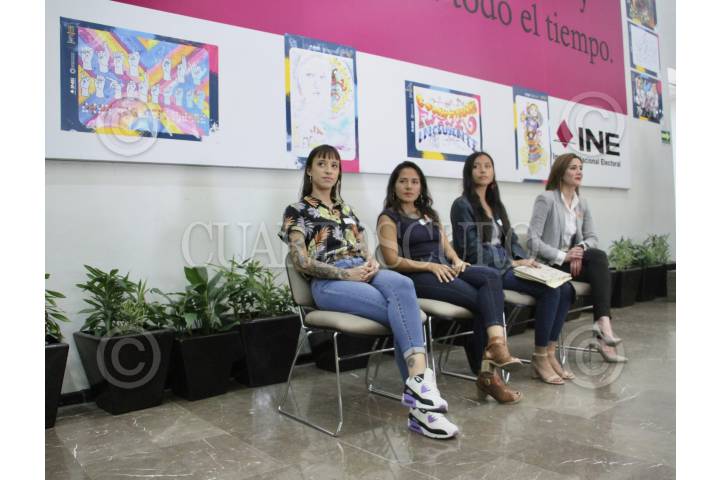 CIUDAD DE MÉXICO, 26NOVIEMBRE.- Dania Ravel . consejera del Instituto Nacional Electoral y miembros de la banda la Gusana Ciega, durante la presentación del vídeo musical “Pasiflorine”, el cual aborda el tema de la violencia de género de dicha banda, esto en el marco del Día Internacional de la Eliminación de la Violencia contra las Mujeres, en el auditorio del instituto. FOTO: ROGELIO MORALES /CUARTOSCURO.COM