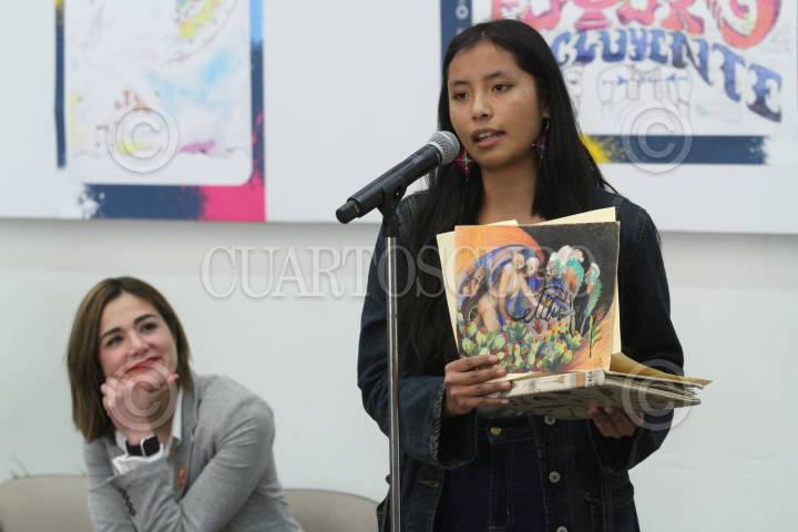 CIUDAD DE MÉXICO, 26NOVIEMBRE.- Miembros de la banda la Gusana Ciega y representante de Cuando el Arte Alza la Voz, durante la presentación del vídeo musical “Pasiflorine”, el cual aborda el tema de la violencia de género de dicha banda, esto en el marco del Día Internacional de la Eliminación de la Violencia contra las Mujeres, en el auditorio del instituto. FOTO: ROGELIO MORALES /CUARTOSCURO.COM