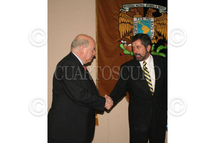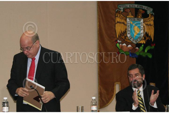 MÈXICO, D.F. AGOSTO2006.- Josè Miguel Insulsa, secretario general de la OEA, se reuniò con Juan Ramòn de la Fuente, rector de la UNAM y diversos acadèmicos y diplomàticos en un foro donde se analizaràn la problemàtica social y polìtica en Latinoamèrica. FOTO: Paola Hidalgo/CUARTOSCURO.COM